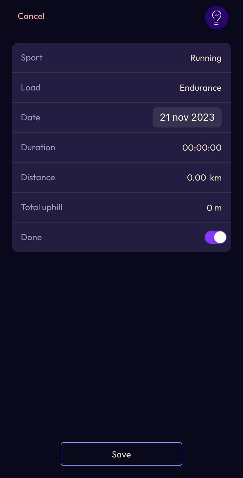 Tip: by selecting a time in the past, you can manually add to your plan a training session that has already been completed.