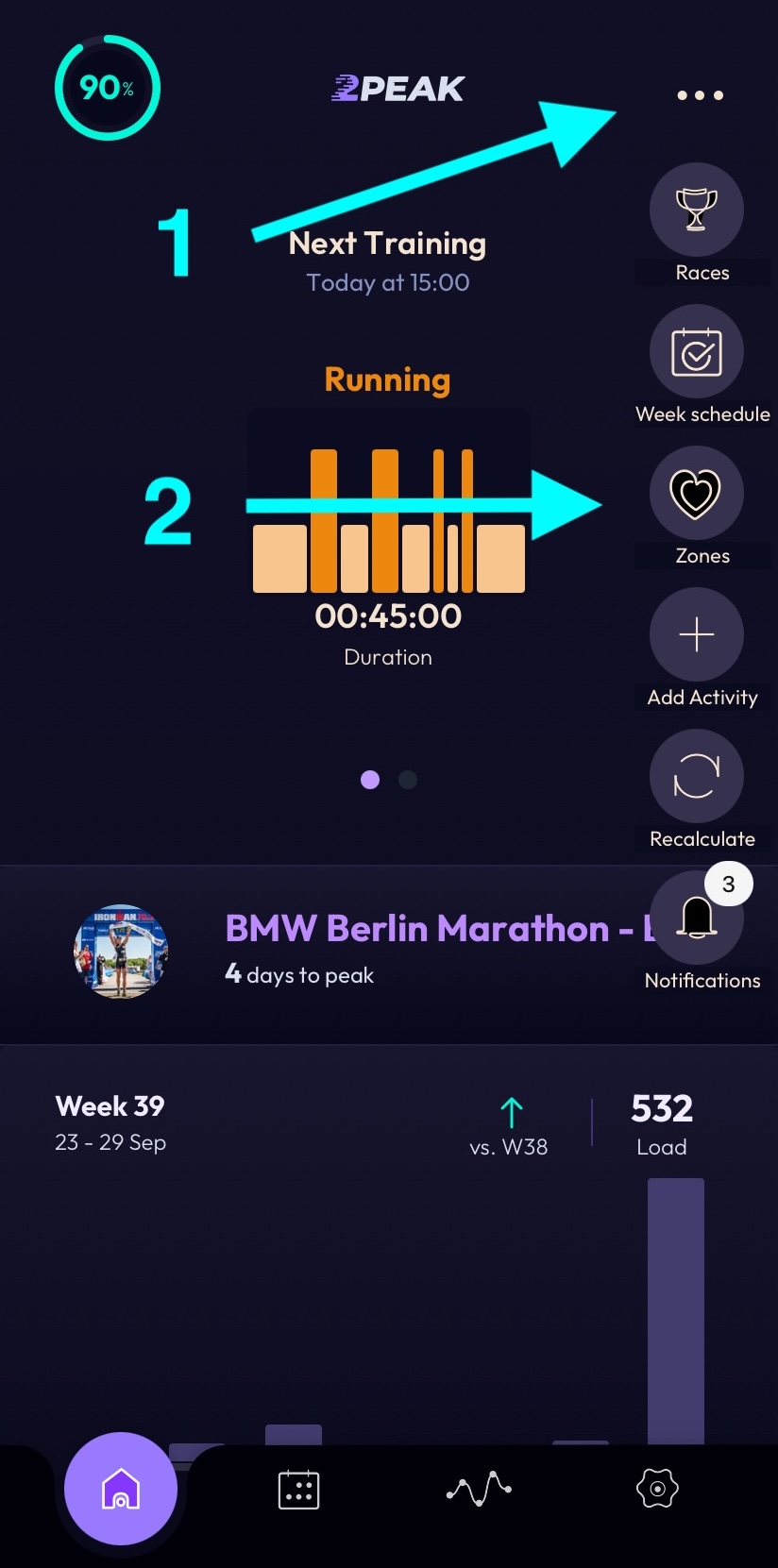 To enable automatic calculation of the training zones in 2PEAK, at least 15 workout files from the last 90 days need to be uploaded. Of course, after a new registration, past data (e.g., by connecting Strava or Garmin) can be used to perform the calculation.
