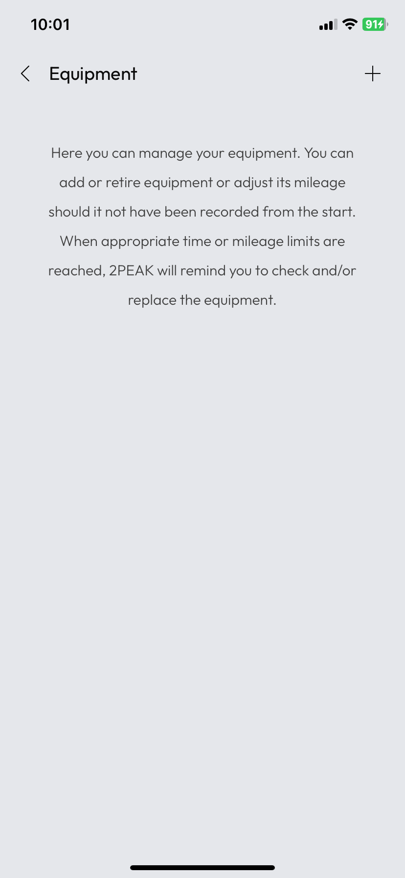 - Ajoute, mets « au repos » ou mets à jour le kilométrage de ton équipement. Si tu as oublié d’enregistrer les kilomètres initiaux, tu peux toujours les corriger. Lorsque tu atteins une certaine limite de temps ou de distance, 2PEAK te rappellera de faire un contrôle et, si nécessaire, de remplacer l’équipement.