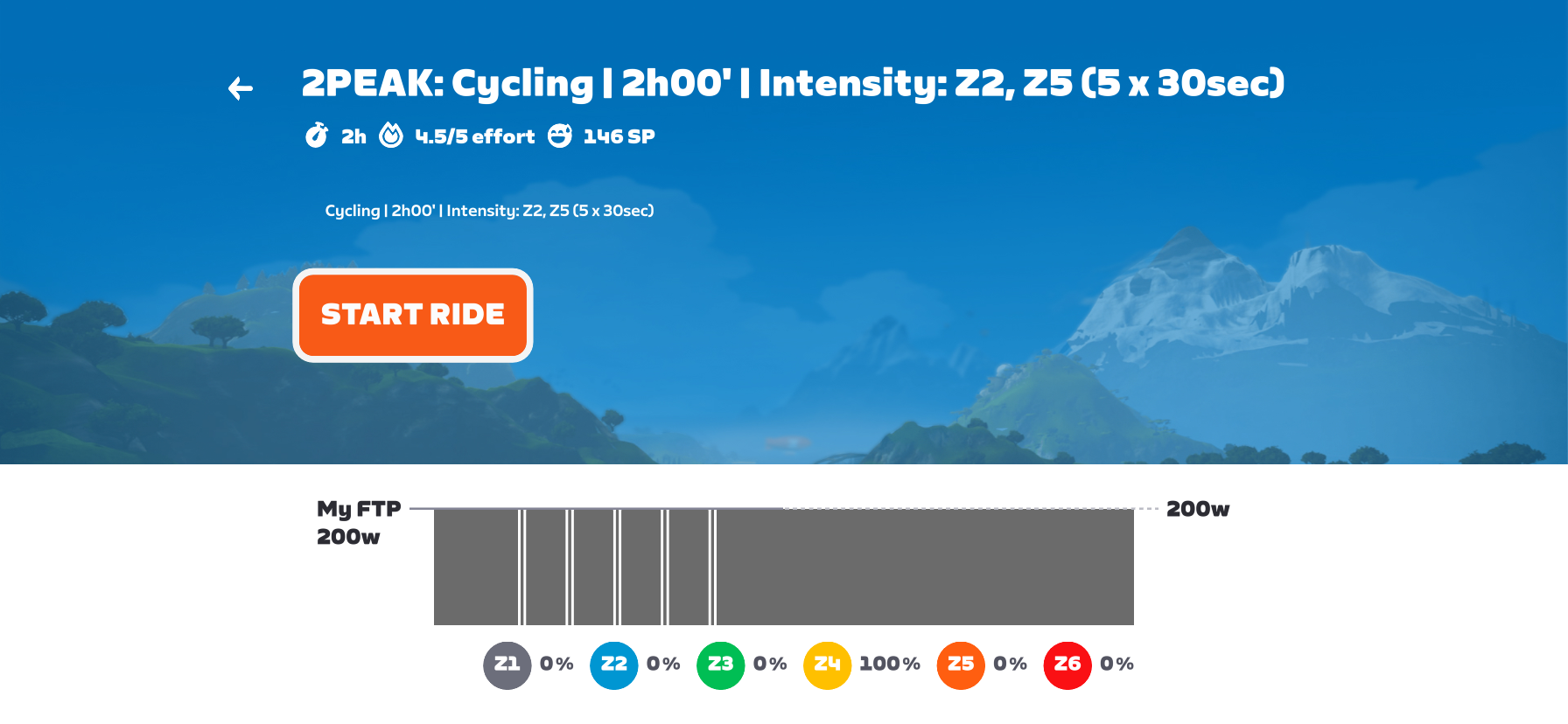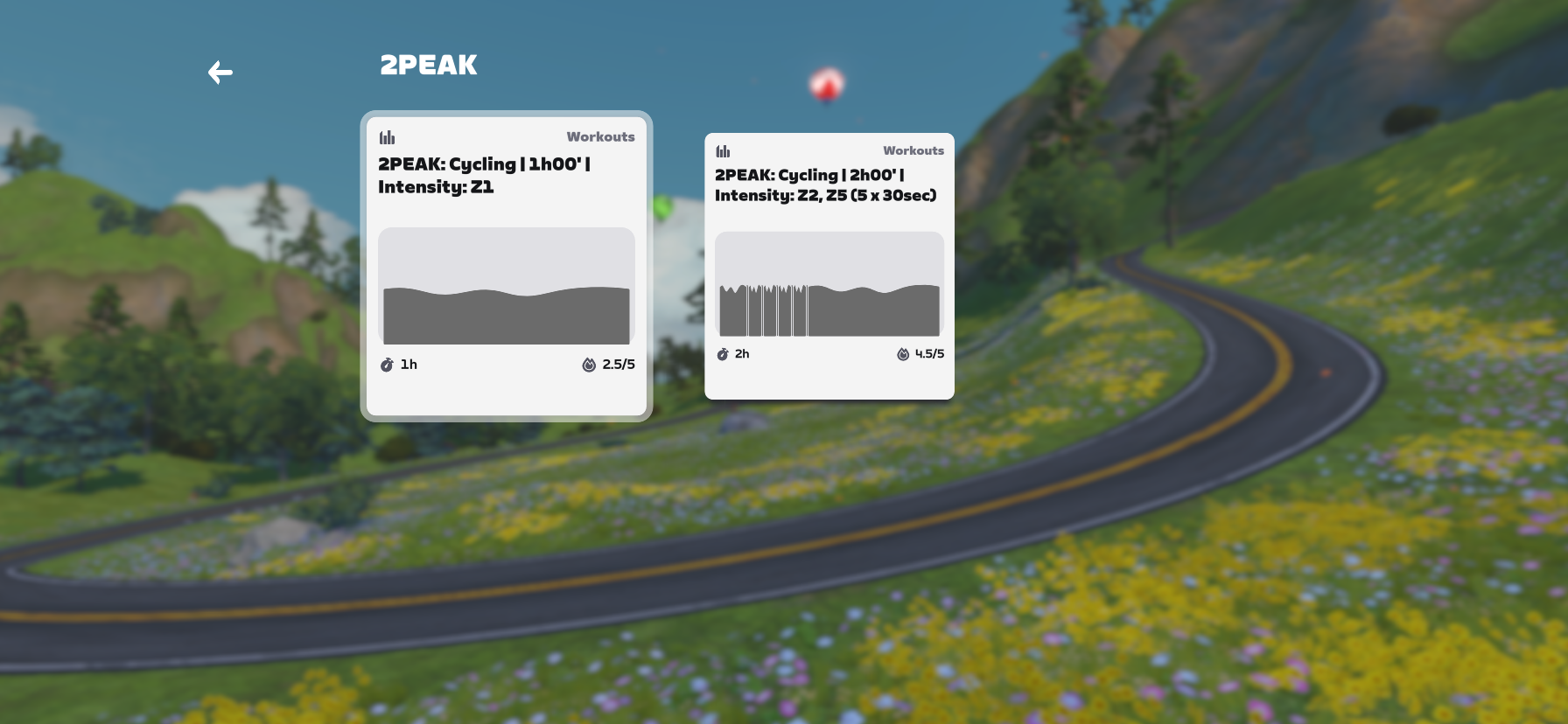Apri Zwift, vai sul tuo profilo, clicca su Allenamenti > Personalizzati e troverai la cartella 2PEAK. Una volta aperta, visualizzerai i tuoi allenamenti. Premi “Start ride”, scegli il tuo mondo e inizia la sessione.